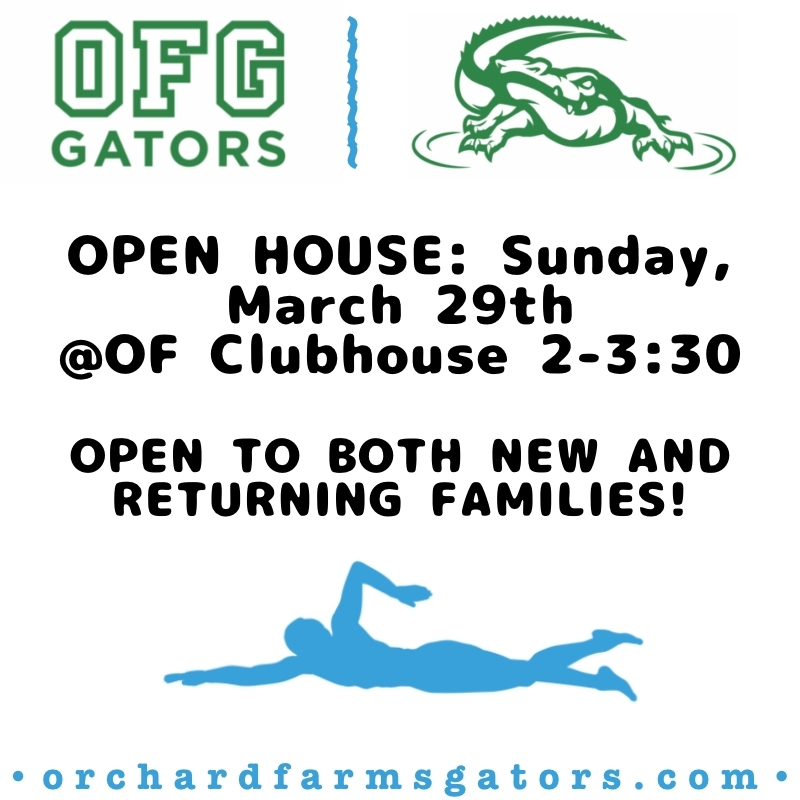 Open House is scheduled for Sunday, March 29th from 2:00 - 3:30 and is open to both new and returning swimmers and their families.